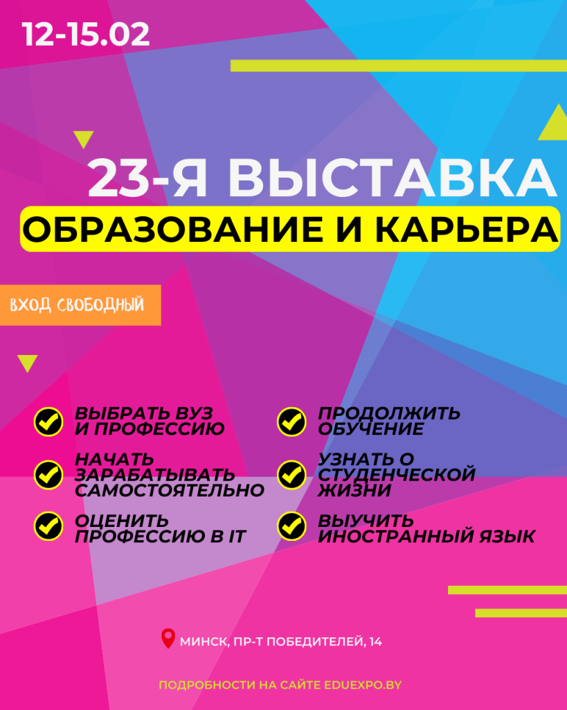 Не упустите главный шанс сделать осознанный шаг к будущей профессии и построить успешную карьеру. Подробности и электронный каталог участников - на сайте eduexpo.by.
